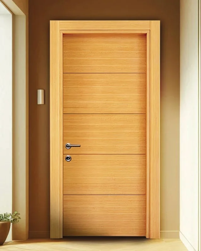 Wood veneer doors are faced with a very thin layer of wood cut (veneer) and covered with two layers of varnish. Framework for these doors usually is solid wood.